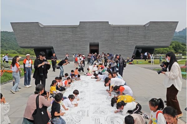 活動當日,大禹陵景區(qū)還舉辦了“南鎮(zhèn)一刻”文化體驗課堂活動。活動以知識宣講、文化展示、互動體驗的方式,向市民游客宣傳亞運知識、大禹文化和紹興歷史?!?strong>知味亞洲 聚焦禹陵”南鎮(zhèn)亞運風情美食市集和大禹博物館燈光秀等活動同期舉辦,吸引眾多市民游客品亞洲特色美食,購亞洲風情好物,賞夜幕下的大禹博物館美景。