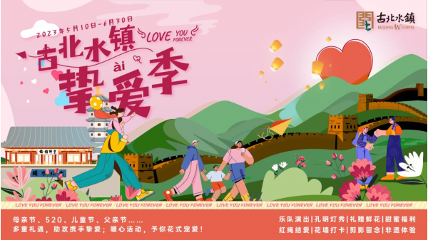 據(jù)介紹,本次活動(dòng)將持續(xù)至6月30日。其間,古北水鎮(zhèn)將圍繞每個(gè)節(jié)日分別推出專屬打卡點(diǎn)。母親節(jié)及520情人節(jié)期間,景區(qū)工作人員將在不同時(shí)間段,為在打卡點(diǎn)合照留影的游客準(zhǔn)備鮮花作為“愛的紀(jì)念”。520情人節(jié)期間,日月島廣場(chǎng)將推出大型情歌樂隊(duì)現(xiàn)場(chǎng)演出。兒童節(jié)當(dāng)天,14周歲以下的小朋友均可免票進(jìn)入古北水鎮(zhèn)童玩館。