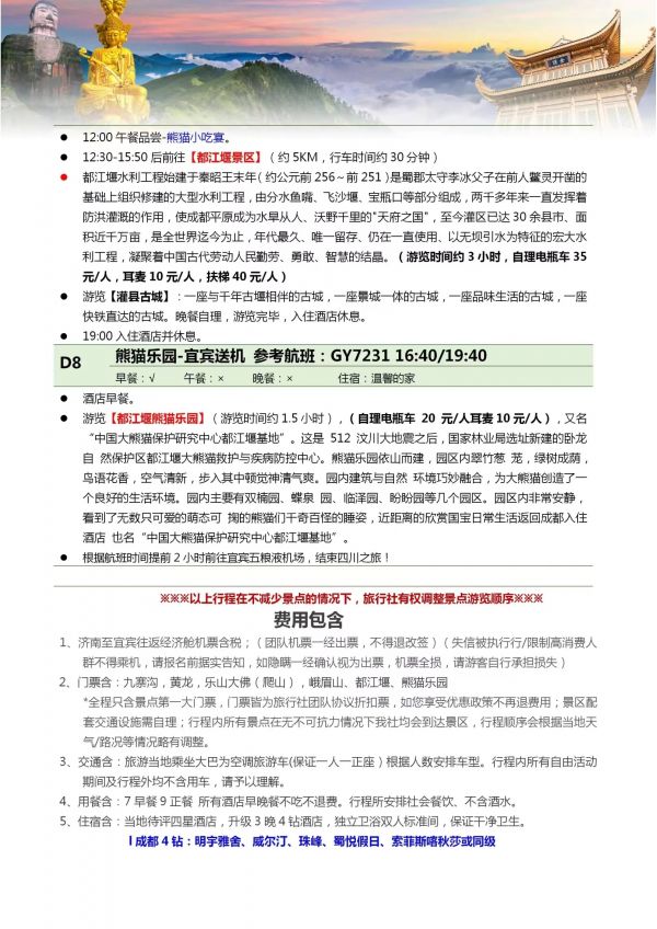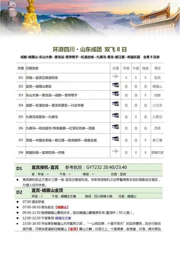 四川雙飛8日游