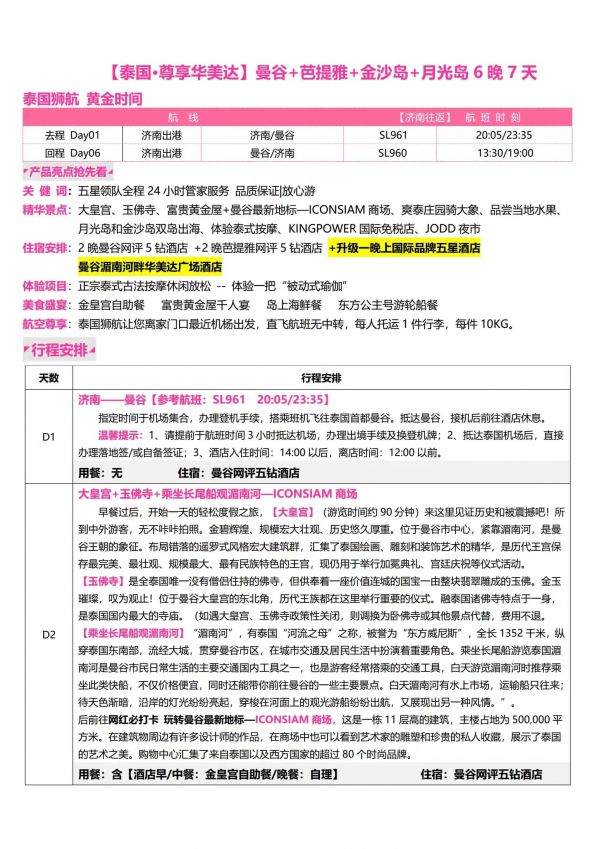 泰國7天6夜游