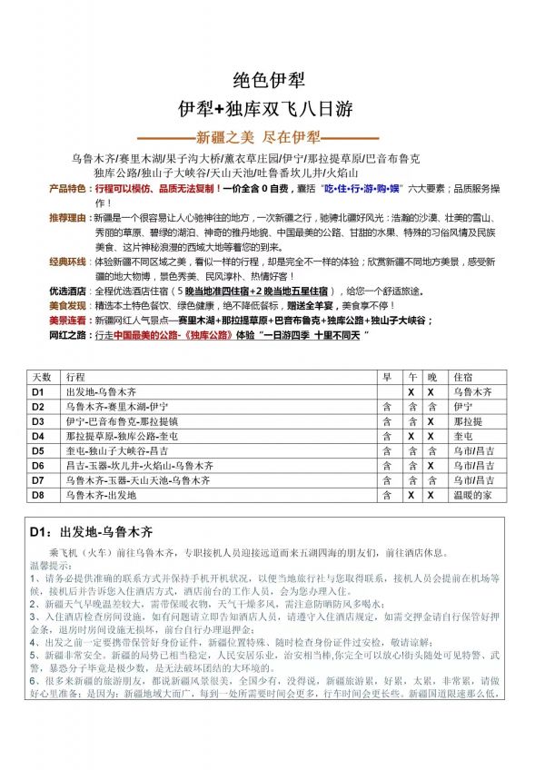 伊利-獨(dú)庫雙飛8日游