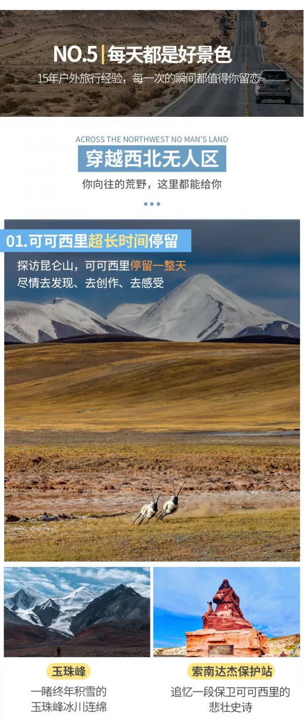 格爾木 — 【可可西里腹地全天】玉珠峰觀景臺(tái)、昆侖山口、索南達(dá)杰保護(hù)站、邂逅藏羚羊藏野驢等高原精靈 — 格爾木