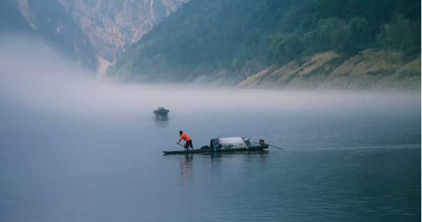 三十年代,文學家沈從文先生就是在這條山勢曲折高崖絕壁間的清澈酉水上乘船寂寞返鄉(xiāng),寫下了 名作《湘行散記》。所記皆湘西水上的人們——商人、妓女、瞎子、舵手……他們都是凡夫俗子,不辜負自然,對歷史毫無負擔,他們在這世界無人知曉的地方恨愛生死,樸素的過完一生。當年的健壯的纖手,船夫蹲在青石上講生意,討價還價的場景已不復再有,近一百年后在這酉水上討生活的人們,已換了機動船??稍谒舷嘁罏槊拇遥切┍持林刂窈t的人們,依舊那么莊嚴認真地活著。