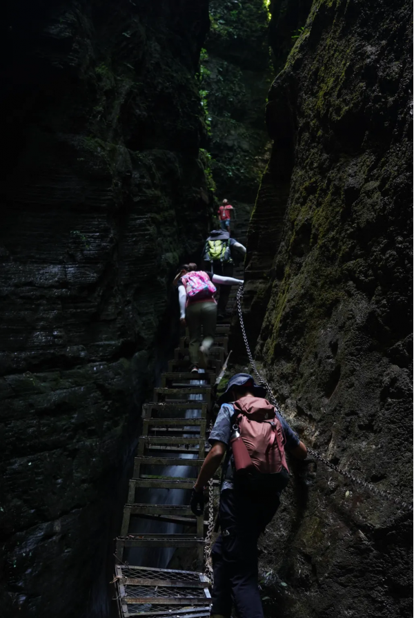檳榔谷,這里是戶外徒步的天堂,全中國都找不出第二條的戶外路線。神秘的“天使之城”吸引了無數(shù)戶外愛好者結(jié)伴而來。檳榔谷是集溶洞、探險、峽谷徒步、攀巖于一體,一次性360°全方位讓你體驗戶外的樂趣,其中800米溶洞探險最為刺激有趣。天使之城有一大型喀斯特溶洞,似天使留下的通城暗道。洞內(nèi)有暗河和數(shù)不清的支洞巷道,石灰質(zhì)溶液凝結(jié)而成的石鐘乳、石筍、石花、石幔、石珊瑚遍布其中,最大洞宮可容納千人,因歷代多有人洞中迷失,當?shù)厝朔Q之為迷洞。迷洞暗河河道曲徑通幽,沿著它在黑暗中兜兜轉(zhuǎn)轉(zhuǎn)約800米后,眼前豁然開朗。過了天使之城,沿著崖壁陡坡巖降下切,來到一條狹長地帶的山岳型溪谷,就到了世外桃源 “ 夾兒溝 ” 。我們沿著夾兒溝溯溪而上,或一線天峽、或峰回路轉(zhuǎn)、或暗河涌動,一路醉眼朦朧。萬物皆有裂縫,陽光、空氣和生命之水,使得地縫秘境之處的夾兒溝,演化為生機盎然的,世外桃源!