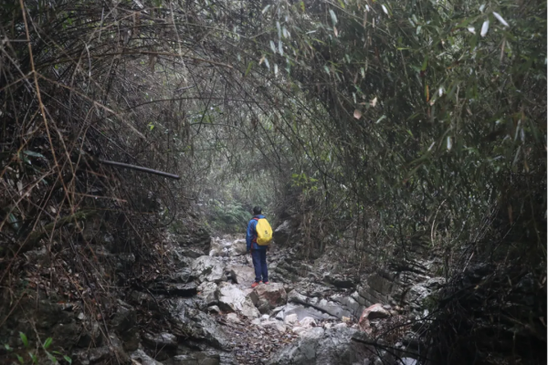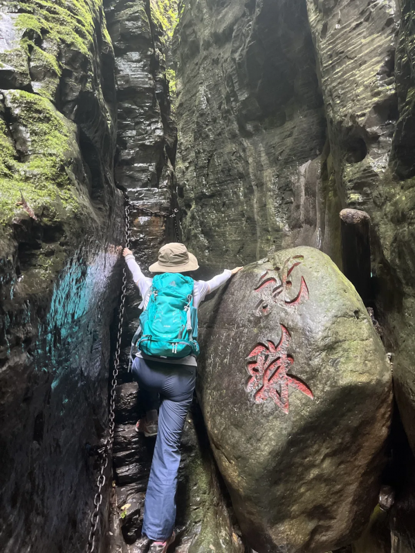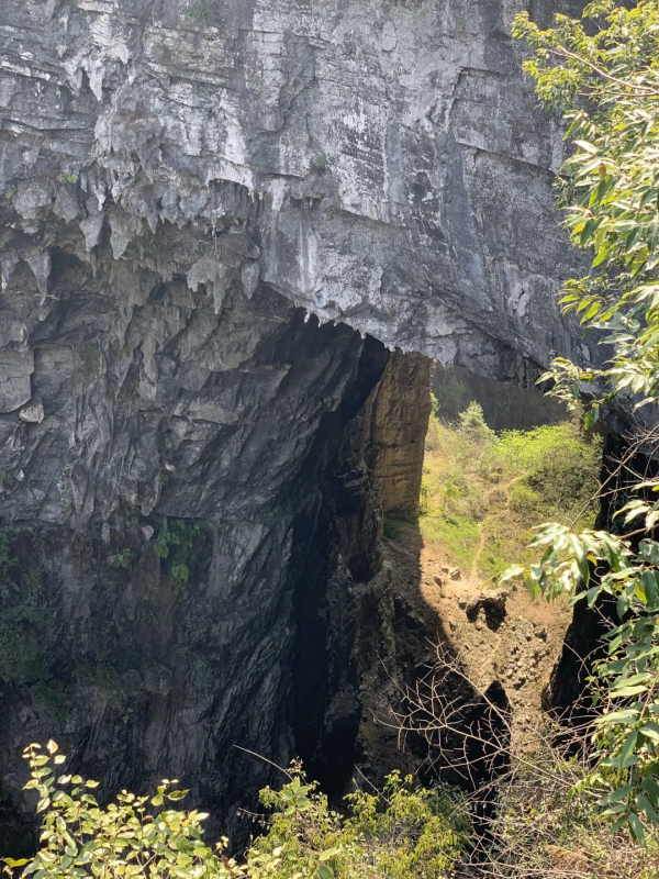 下午我們前往首車鎮(zhèn)豬鼻山徒步,這是一個完全未被開發(fā)的地方,只有當?shù)厝瞬胖?,我們在小路一路下行,一級一步循著古人的腳步,踏出的是輪回和歲月。接著便來到今天的徒步精華--天生雙橋,行走于巨石上,腳踩億年前的巨石褶皺,感受自然的鬼斧神工。
