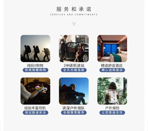 4. 領(lǐng)隊:六人以上優(yōu)秀戶外領(lǐng)隊全程服務,六人(含)以下司機兼領(lǐng)隊服務