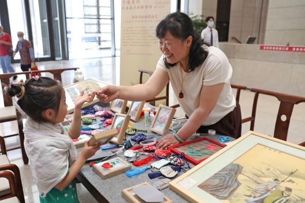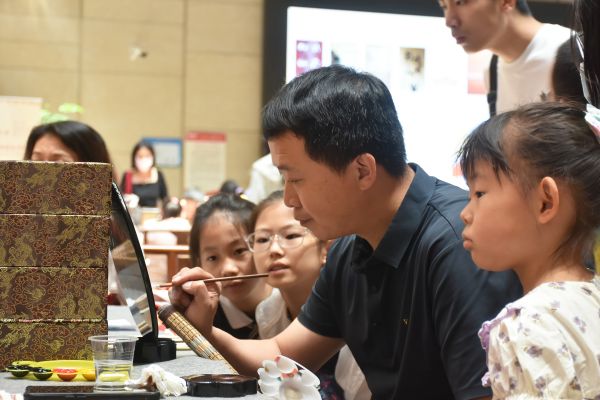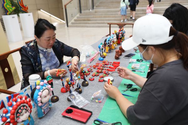 在平遙推光漆器髹飾技藝體驗(yàn)區(qū),活潑可愛的貓咪、亭亭玉立的荷花,活靈活現(xiàn)地展現(xiàn)在漆器上。在平遙木雕神像傳統(tǒng)技藝體驗(yàn)區(qū),孩子們細(xì)細(xì)雕刻著手中的作品,沉浸在創(chuàng)作的樂趣中。在晉中面塑技藝體驗(yàn)區(qū),不少觀眾親手制作出惟妙惟肖的專屬面塑人物。在平遙傳統(tǒng)(白)銅器制作技藝體驗(yàn)區(qū),在陣陣“叮叮當(dāng)當(dāng)”的金屬敲擊聲中,一件件亮閃閃的生肖掛件制作完成。在堆繡傳統(tǒng)制作技藝體驗(yàn)區(qū),精美細(xì)膩的堆繡也吸引了不少人圍觀,大家紛紛向傳承人詢問剪裁和針法的方法技巧。