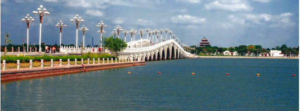 為國家AAAA級旅游景區(qū)。以水面遼闊、風(fēng)景秀麗、環(huán)繞于中華水上古城區(qū)的東昌湖為依托,馳名中外的京杭大運河穿景區(qū)而過,集中體現(xiàn)了“水、古、文”的特色,營造出聊城“城中有湖,湖中有城,城湖河一體”的獨特風(fēng)貌。風(fēng)景區(qū)內(nèi)錯落散布著光岳樓,鐵塔,山陜會館,海源閣等名勝古跡,及傅斯年紀(jì)念館、范筑先紀(jì)念館、孔繁森同志紀(jì)念館等文化景點;還包含了聊城垂釣基地、東昌湖游樂園、江北水寨、沙灘浴場、湖心島、荷香島、騰龍廣場、水城明珠大劇場、二十一孔橋、湖濱公園、金鳳廣場等一大批游覽景點和設(shè)施。歷史東昌湖始建于宋熙寧三年(公元1070年),在原護城河的基礎(chǔ)上經(jīng)歷代開挖而成,現(xiàn)有水域6.6平方公里,為江北地區(qū)罕見的大型城內(nèi)湖泊。東昌湖引黃河水為源,常年水深3-5米,湖水清澈,無任何工業(yè)污染;景色宜人,令游客流連忘返。東昌湖中心是已有千年歷史的1平方公里的正方形聊城古城。古城風(fēng)貌保存完好,以古城正中的光岳樓為中心,向四面輻射,形成東西南北四條古城區(qū)干道,其它大街小巷,也都是經(jīng)緯分明,垂直交叉,形成棋盤方格網(wǎng)狀骨架。古老的京杭運河兩岸,街巷布列,各種店鋪民居,隨坡就勢,依河而建。