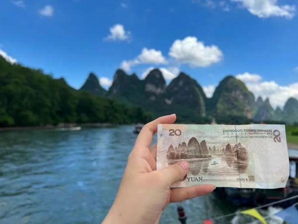 精華景點(diǎn)● 5A級景區(qū)《興坪漓江游船》正規(guī)航線,賞20元人民幣取景地