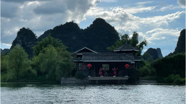 早餐后,游覽原汁原味、原生態(tài)、具有濃郁廣西少數(shù)民族風(fēng)情的《劉三姐》電影拍攝實(shí)景地—【經(jīng)典劉三姐大觀園】(AAAA級景區(qū),游覽時(shí)間約120分鐘),景區(qū)內(nèi)具有壯族特色的金蟾對歌臺,造型奇特,令人大開眼界。