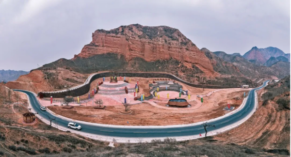 井部落文化廣場以當?shù)爻鐾恋纳尘幕拍惯z址為文化線索,結(jié)合現(xiàn)有的鷹巖崖壁景觀和山谷平地,以出土“鷹”首杖的“鷹”為圖騰元素,規(guī)劃“鷹巖祭天”活動場景。這里的摩崖石刻藝術(shù)地展現(xiàn)了古絲綢之路的繁華盛況,可以讓人穿越時空,回味沙井文化歷史。