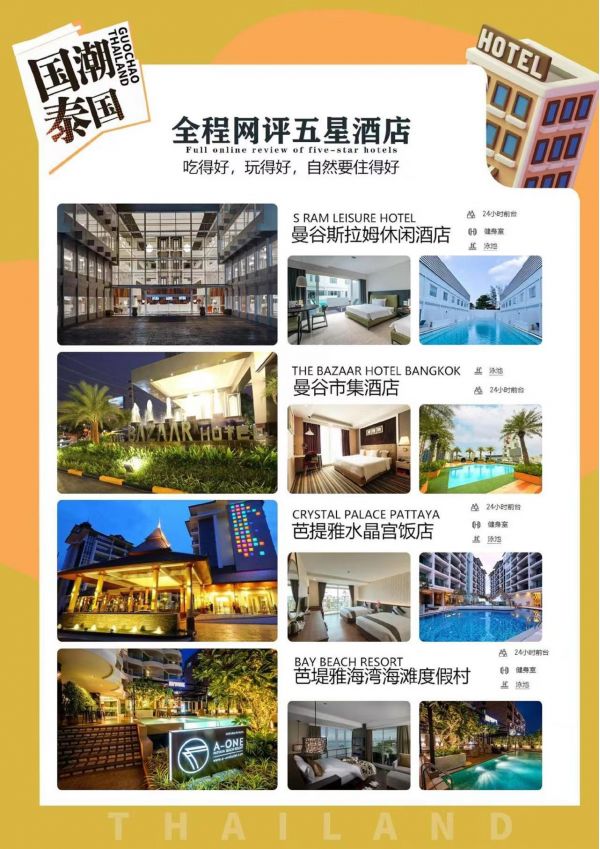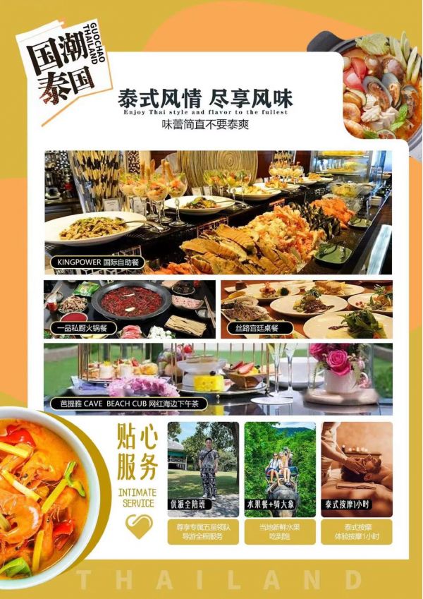 酒店早餐后前往【沙美島samet國家公園自然保護區(qū)】(游玩約4H)位于泰國曼谷東南方的羅永,最吸引人之處在于擁有全泰國最優(yōu)美的沙灘,一年四季均可享受風浪板、浮潛滑水等水上活動,還擁有芭堤雅所沒有的寧靜閑適。去芭堤雅,一定要去沙美島,因為沙美島的確是名副其實的“沙美島”。那黃里透白,面粉一樣細嫩的海沙,鋪成又長又寬的沙毯,為太平洋鑲上了金色的花邊。島上那椰子樹、棕櫚樹等構成的熱帶叢林,像忠誠的衛(wèi)士守護著漂亮的沙灘,也守護著來自世界各地的觀光客和海泳者。沙美島不僅有美麗的熱帶風光和第一流的海泳場,還有那別具特色且價廉物美的熱帶水果和海鮮燒烤品嘗.(島上的付費娛樂活動供游客自主選擇與旅行社無關。)【泰式按摩】(約60分鐘),擁有四千多年歷史,手法涵蓋了按、摸、拉、拽、揉、捏等動作??梢允谷丝焖傧?,還增強關節(jié)韌帶的彈性和活力,促進體液循環(huán)。來到新晉網(wǎng)紅下午茶【cave beach club】(自由活動時間不少于90分鐘),藍天白云下,面朝大海,享受海風,假裝身在夏威夷,芭提雅應該沒有比這里更新更適合打卡的下午茶場所了吧。