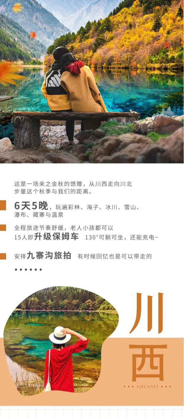 住宿:黑水酒店標(biāo)間說明”早餐后經(jīng)米亞羅、鷓鴣山隧道,隨后來到奶子溝,秋天的【奶子溝】是彩林的世界,在雄奇的冰川下、美麗的雪山上、獨特的藏寨邊、蜿蜒河流旁均有成片的彩林分布,是亞洲最大的天然彩林,享有“八十里畫廊”的美譽(yù)。游覽拍攝之后車?yán)^續(xù)前行,沿途會經(jīng)過一個叫【洛哩措】的地方,這里像是一塊地球送給我們的綠寶石,陽光和煦、波光粼粼,連掠過的風(fēng),都是自由的。隨后來到【羊茸哈德藏寨】,當(dāng)?shù)厝私小岸透隆?,意思是?strong>神仙居住的地方”,清一水的藏式民居坐落于彩林間,彩色的窗沿點綴著整個建筑,色彩素雅又歡快。藏寨碧水潺潺、林蔭繁茂、彩林環(huán)繞、色調(diào)分明、鱗次櫛比,這里的藏人服飾獨特,淳樸善良,隨處可見神秘的宗教符號,五彩的藏家建筑與七彩經(jīng)幡交相輝映,有著濃郁的嘉絨藏族風(fēng)情。