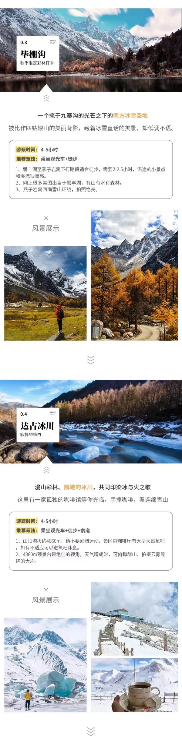 隨后游覽【紅軍湖】、【紅軍橋】、【神牛湖】,欣賞沿途的美景。后到達(dá)索道下站,也就是觀光車終點站,從這里開始就是達(dá)古冰川的精華景點,10-11月紅葉彩林漫山遍野,層林盡染,猶如一幅彩色油畫。我們可以在索道下站坐索道直接上到山頂?shù)谋ǜ沟?,看連綿雪山冰川,觀賞【一號冰川】,感受一覽眾山小,俯視一切的雄壯氣概。還可以在世界上海拔最高的咖啡館,同時也被稱為【世界上最孤獨的咖啡館】,喝上一杯咖啡,飽覽美景。看過冰山下的秋景前往黑水縣入住。