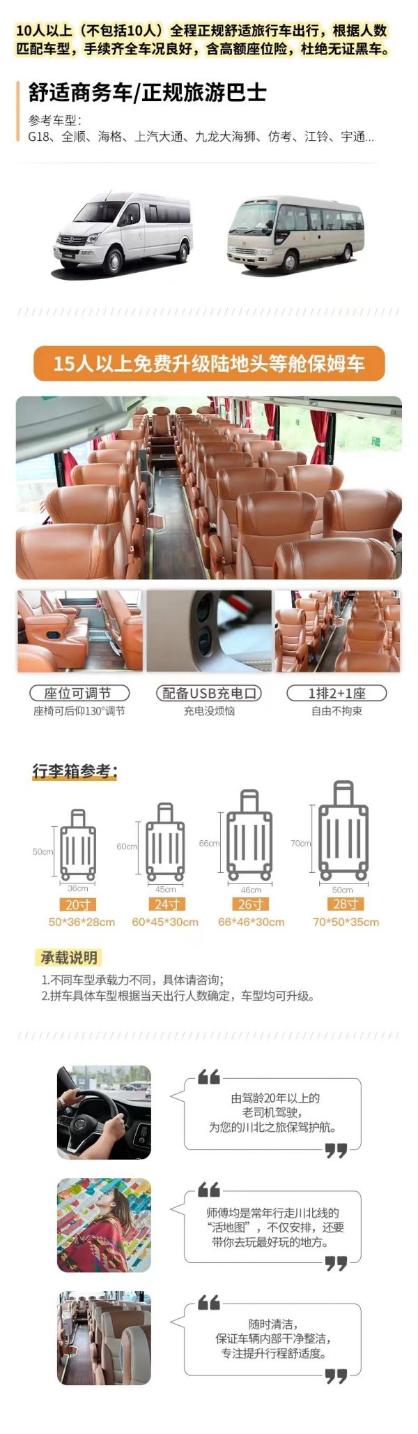 (6)證件:國內(nèi)游身份證,跨境游的護(hù)照、簽證、機(jī)車船票及文件等身份證明和憑據(jù),必須隨身攜帶;建議攜帶導(dǎo)游證、學(xué)生證、軍殘癥、老年證等可減免證件(請保證個人證件真實性)。