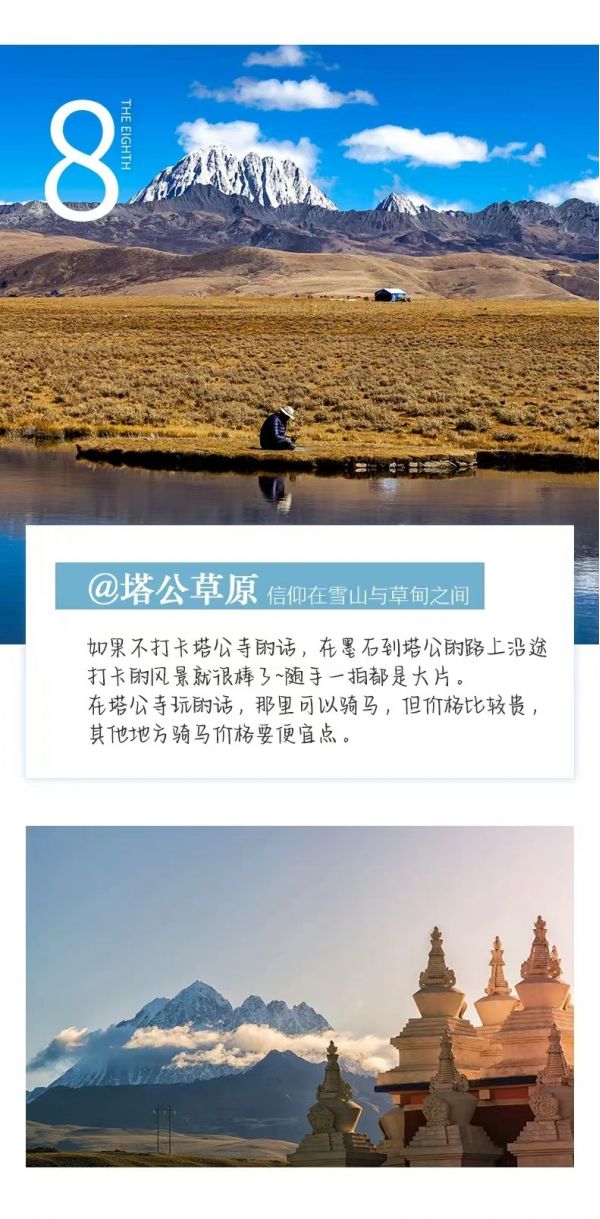 甲居藏寨—雅拉雪山觀景臺(tái)—墨石公園—塔公草原—魚(yú)子西—新都橋鎮(zhèn)