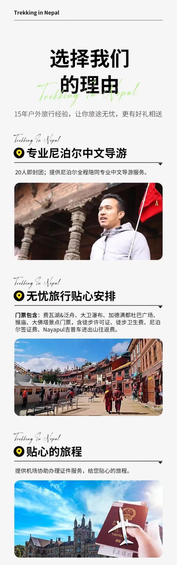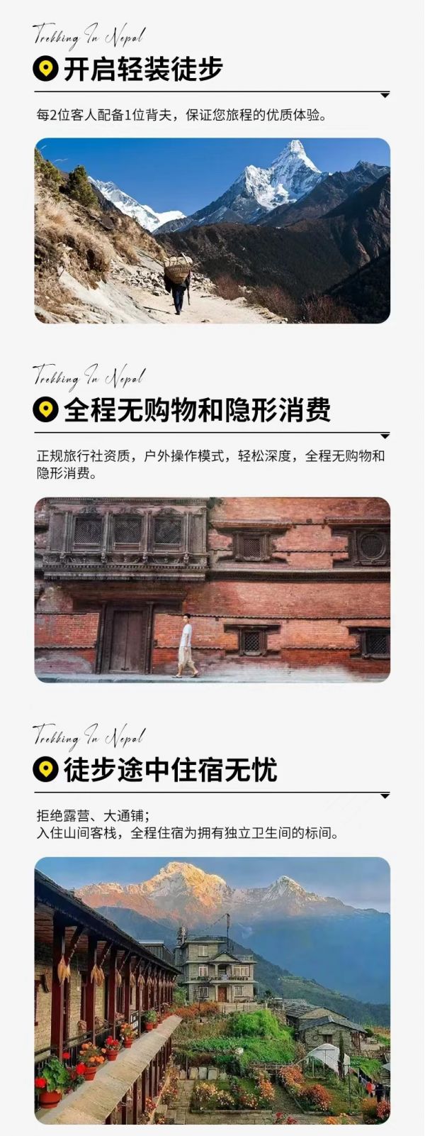 2、尼泊爾旅游不進(jìn)店不推自費(fèi),請(qǐng)客人不要參加博卡拉的滑翔傘和小飛機(jī)等項(xiàng)目,這些旅游項(xiàng)目是中國的出境旅游保險(xiǎn)的免責(zé)項(xiàng)目,請(qǐng)大家堅(jiān)決執(zhí)行。