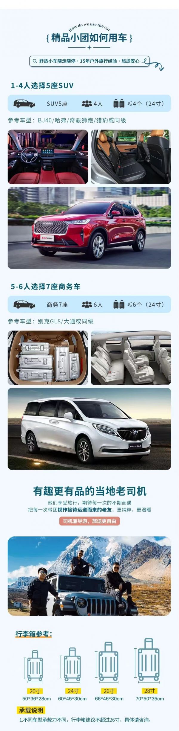 私人訂制:我們業(yè)務(wù)范圍囊括了全國(guó)各大城市,川西、西北、新疆、西藏,在路上永遠(yuǎn)有我們的身影。我們將為每一個(gè)有定制需求的你策劃出獨(dú)屬于自己的完美旅行。