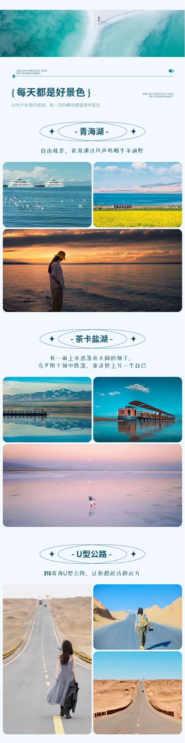 青海湖+茶卡鹽湖+穿越柴達(dá)木盆地+U型公路+水上雅丹+大柴旦翡翠湖+阿克塞石油小鎮(zhèn)+莫高窟+鳴沙山月牙泉+嘉峪關(guān)關(guān)城+張掖七彩丹霞+祁連大草原