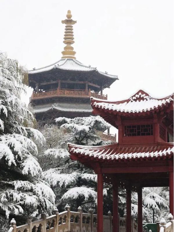 12月11日清晨,濟(jì)南迎來了一場(chǎng)大雪,位于山東濟(jì)南市章丘區(qū)的明水古城國際泉水旅游度假區(qū),從游客服務(wù)中心到百脈泉區(qū)域均被白雪覆蓋,城內(nèi)的雕墻鴛瓦、亭臺(tái)樓閣在白雪的映襯下,更顯得意蘊(yùn)十足。正如老舍在《濟(jì)南的冬天》所說的,恍若是一張來自名手的小水墨畫
