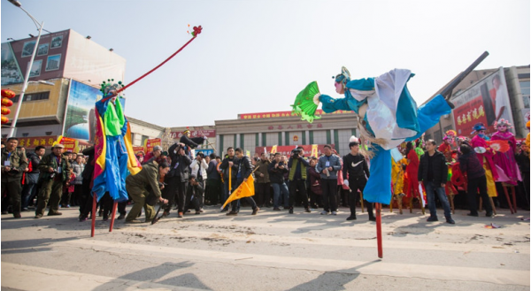 人們?yōu)楸苊饣馂?zāi),以這種方式祭祀火神,表達了勞動人民一種辟邪除災(zāi)、迎祥納福的美好愿望。“火神廟會”舉辦期間,到處人山人海,傳統(tǒng)節(jié)目有大集街高蹺、軍莊秧歌、背閣、抬閣、八卦秋、武術(shù)表演、竹馬、蓮花燈、火龍、花船等,男女演員盛裝上陣,從臉譜到服裝,無不體現(xiàn)了濃郁的傳統(tǒng)文化色彩。
