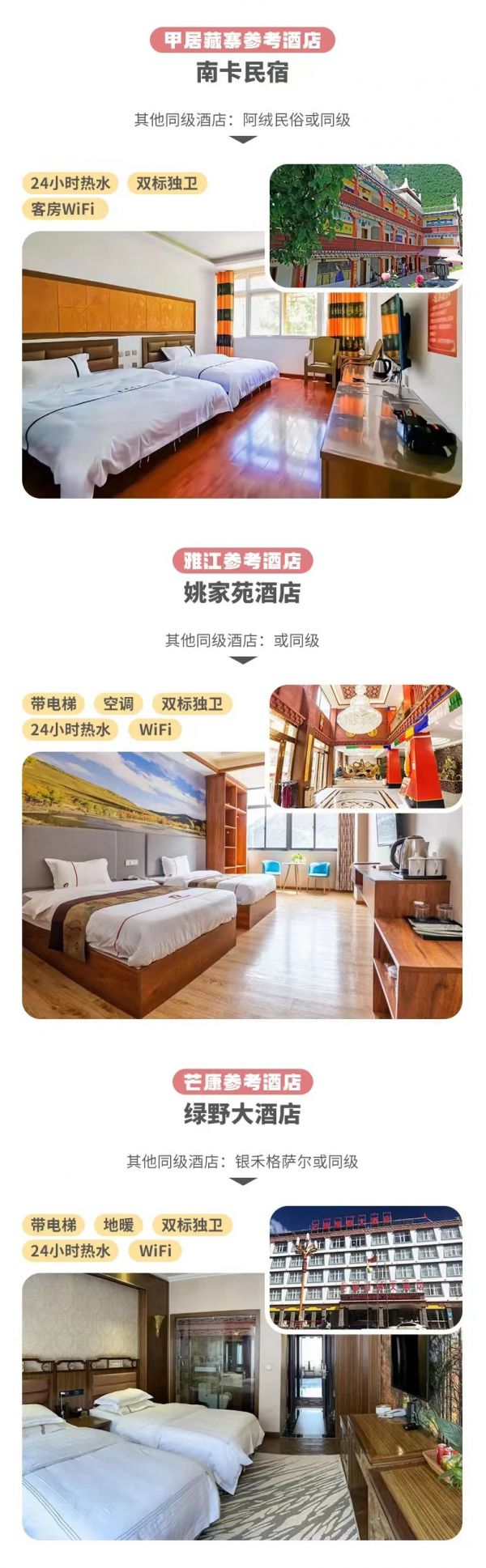? 用餐:含酒店早餐,晚餐嘉絨藏餐,午餐需自理