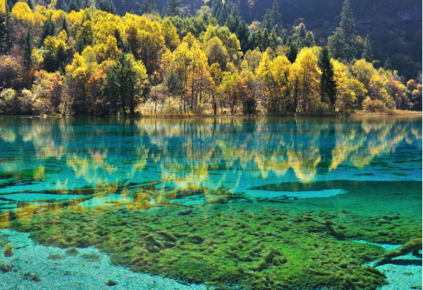 隨著季節(jié)的變化,九寨溝也呈現(xiàn)出不一樣的風(fēng)姿;深秋的九寨溝享譽世界,只見漸次經(jīng)霜的彩林深淺相間、錯落有致,是“萬山紅遍,層林盡染”的最佳寫照,在漫山遍野濃烈的紅襯托之下,碧水更綠、藍天更藍,呈現(xiàn)出光怪陸離的水景;待入冬,莽莽林海都覆上皚皚白雪,林海雪原似玉樹瓊花,潔白、高雅,是觀賞九寨六絕之“藍冰”和“雪峰”的最好時機。