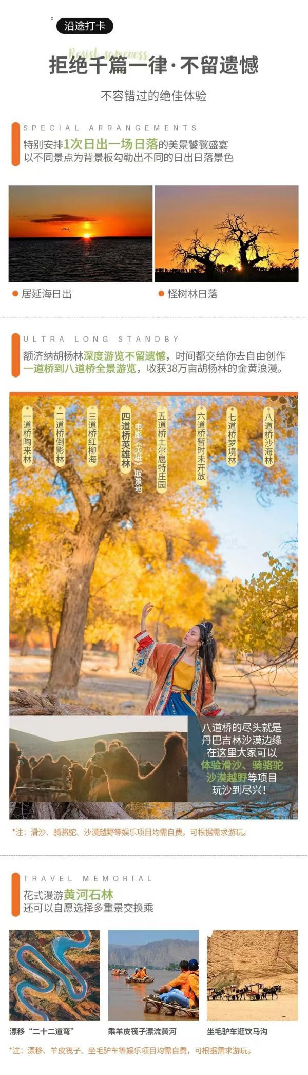 巴丹吉林沙漠自費(fèi)項(xiàng)目(沙漠越野、踏板滑沙、駱駝騎行等),黃河石林景區(qū)自費(fèi)項(xiàng)目(羊皮筏子、毛驢車等)