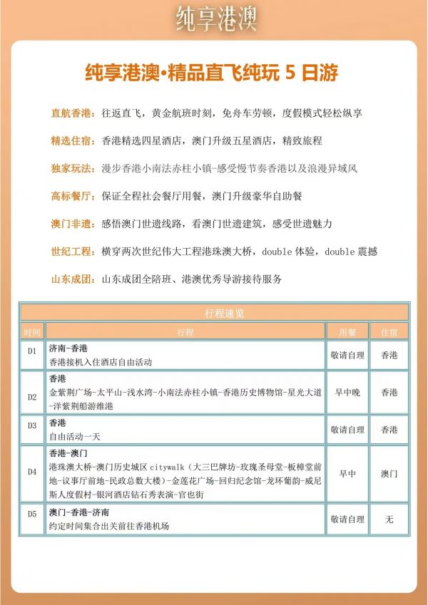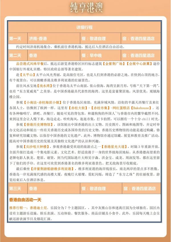 香港澳門屬亞熱帶季風(fēng)氣候,旅游鞋是最方便,陽光很熱情,所以防曬用品墨鏡、太陽傘、防曬霜是必備。目前香港澳門溫度 13-20 度,建議根據(jù)天氣變化準備衣物。天氣變化無常請備好雨具。