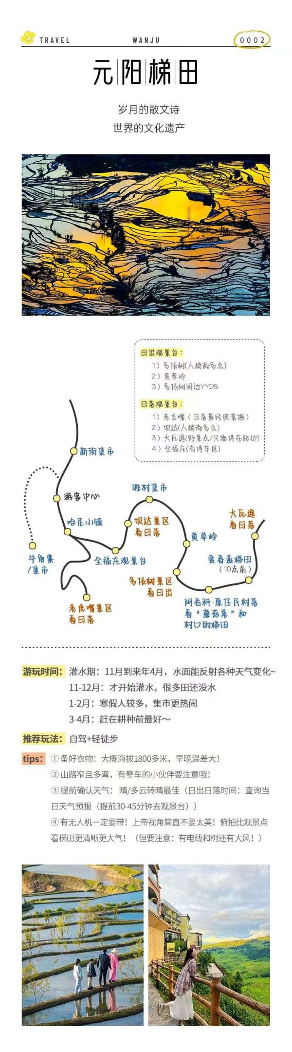 早餐后出發(fā)約半個(gè)多小時(shí)到達(dá)【螺絲田】油菜花,這里的油菜花田呈現(xiàn)出螺絲狀的梯田,與元陽(yáng)的梯田形成鮮明的對(duì)比,讓你不得不感嘆勞動(dòng)人民才是真正的藝術(shù)家,隨著太陽(yáng)慢慢升起,梯田中的云霧也開始慢慢散開,飄飄欲仙,美如仙境。午后游覽【九龍瀑布景區(qū)】,這里是熱門影視《慶余年》等拍攝地。是中國(guó)六大最美瀑布之一的九龍瀑布群。在約兩公里長(zhǎng)的河道上有十級(jí)瀑布,九龍十瀑之間,以淺灘或深潭相連,形成了一串輝映太陽(yáng)光芒的明珠彩帶。邊登高看景邊拍照,渴了買根當(dāng)?shù)爻雒乃}卜,汁多美味,清甜潤(rùn)喉,一路到九龍瀑頂端,那里的油菜花也非常好!