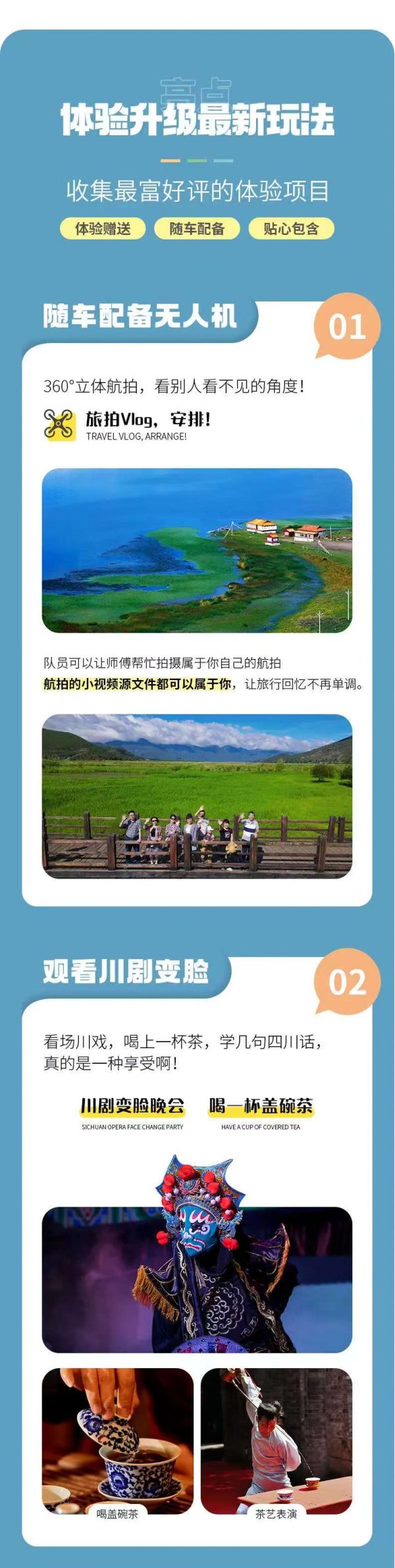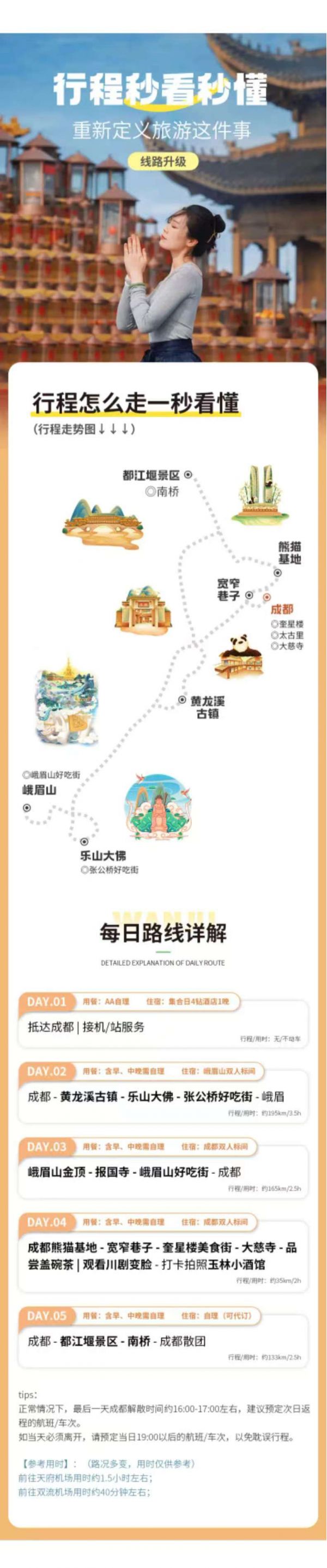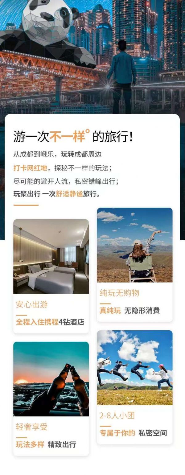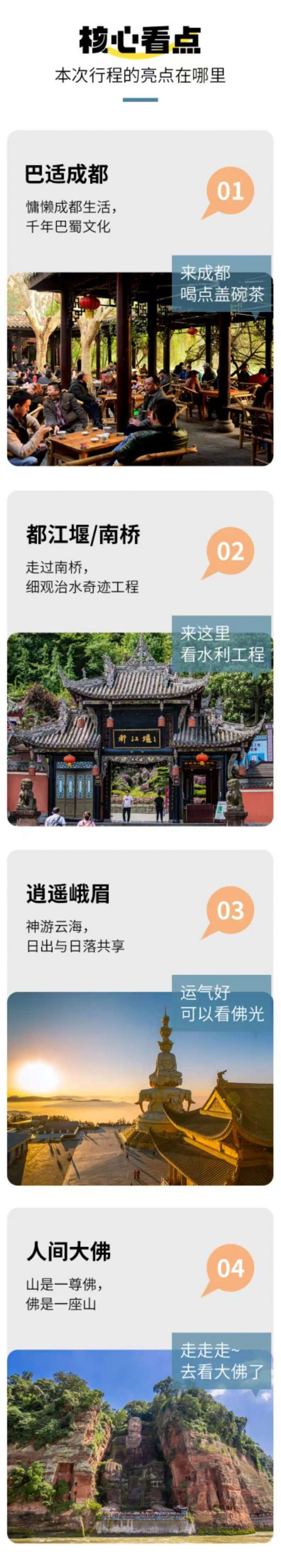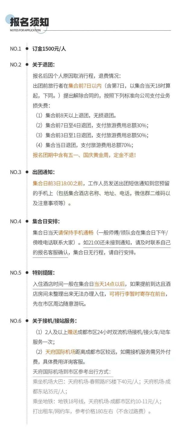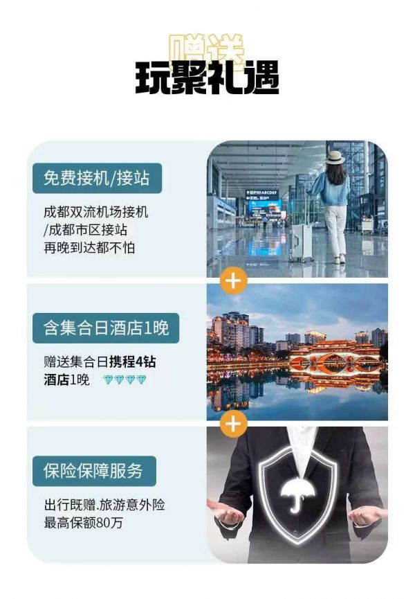 返回成都統(tǒng)一散團(tuán)(由車上游客協(xié)商一致送至統(tǒng)一散團(tuán)點(diǎn),若協(xié)商不成則由司機(jī)送至三環(huán)內(nèi)就近地鐵站散團(tuán)),結(jié)束本次愉快的旅行。由于川西地區(qū)路況復(fù)雜,有可能因?yàn)槎萝嚩l(fā)生延誤,請(qǐng)大家盡量預(yù)定第二天返程的航班或車次。