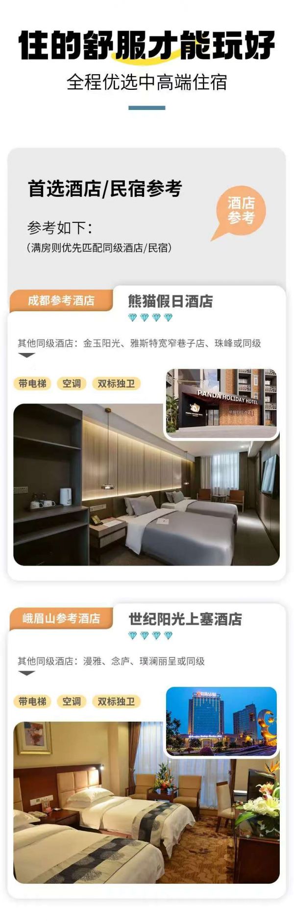 住宿:成都集合日攜程4鉆酒店雙人標(biāo)間