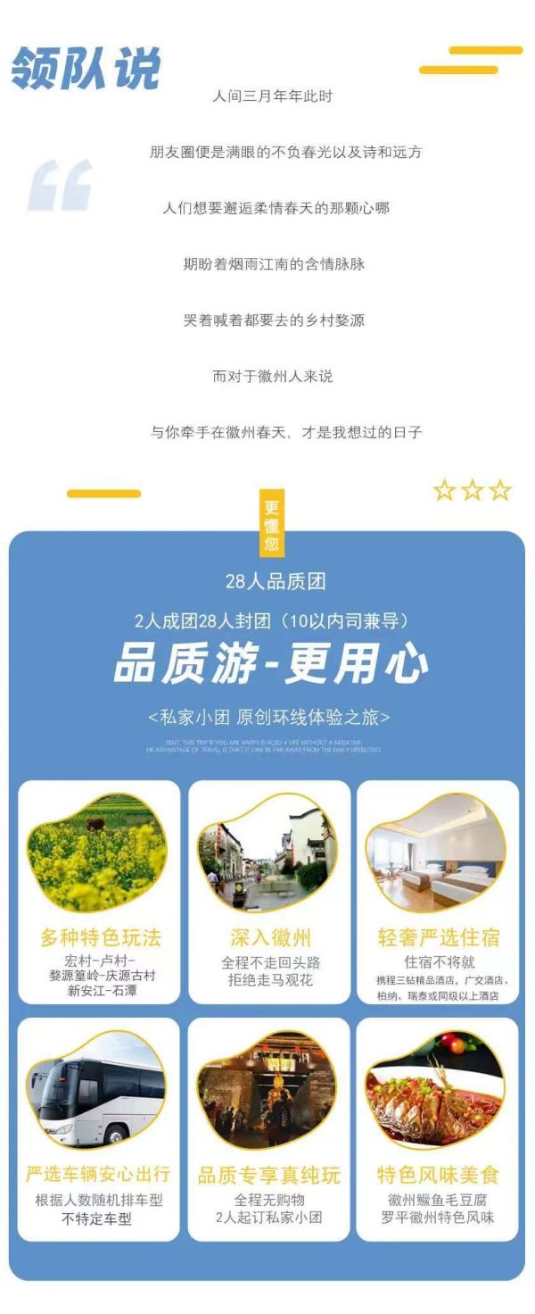 8:00集合出發(fā),9:30抵達(dá),世界文化遺產(chǎn)古村落宏村,宏村是派建筑之集大成者,村落“布局之工,結(jié)構(gòu)之巧,裝飾之美,營造之精,文化內(nèi)涵之深”國內(nèi)罕見,小伙伴們帶上一雙發(fā)現(xiàn)美的眼晴,開始去探索吧!