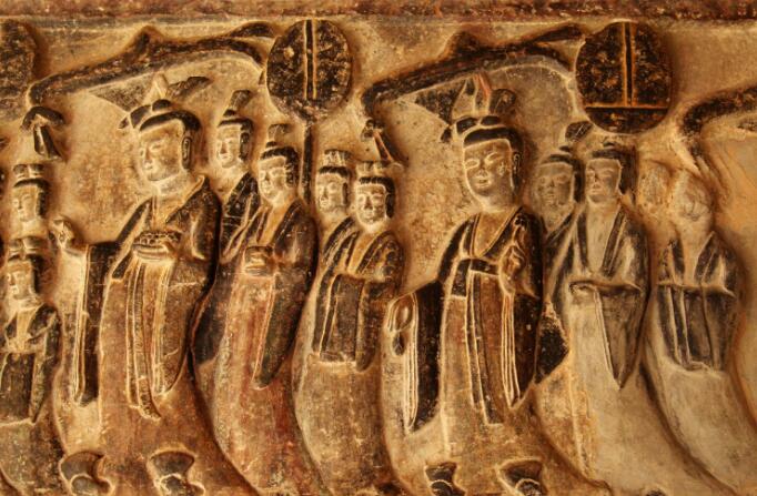 餐后稍事休息,下午考察鄭州的鞏義石窟。石窟諸佛造像多為方圓臉型,神態(tài)文雅恬靜,衣紋簡(jiǎn)練。禮佛圖、飛天、神獸、佛教故事等是現(xiàn)存較完整的北魏浮雕造像。其中最精美的為第一窟“帝后禮佛圖”,構(gòu)圖分三層,東邊是以皇帝為首的男供養(yǎng)為前導(dǎo), 畫面中儀態(tài)雍雅的貴族和身體矮小的待從形成了尊卑鮮明的對(duì)照。第四窟的“帝后禮佛圖” 人物造型獨(dú)具匠心,前呼后擁的禮佛儀仗隊(duì)中供養(yǎng)人大腹便便,相貌森嚴(yán),侍從瘦小低微,比主像小三分之一。儀仗隊(duì)中有的為帝后攜提衣裙,有的執(zhí)扇撐傘,有的手捧祭器,浩浩蕩蕩地簇?fù)淼酆筮M(jìn)香禮佛,表現(xiàn)了皇室宗教活動(dòng)的盛大場(chǎng)面。構(gòu)圖簡(jiǎn)練生動(dòng),刻工細(xì)膩,為我國石窟浮雕藝術(shù)中罕見的杰作。
