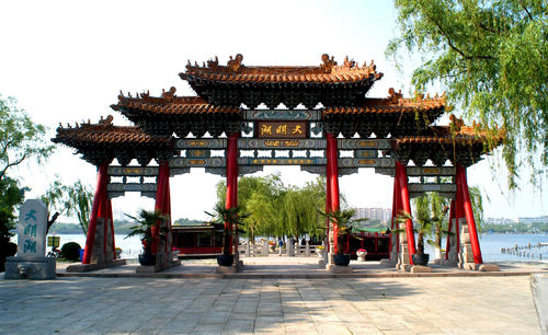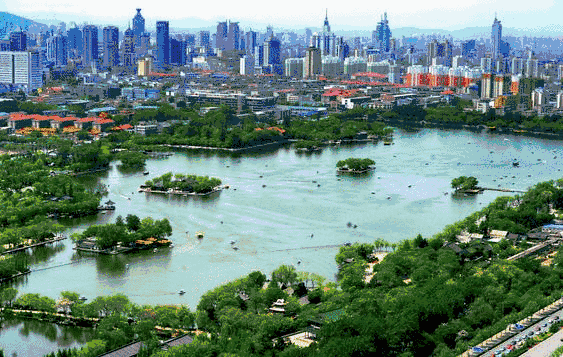 大明湖是濟南三大名勝之一,是繁華都市中一處難得的天然湖泊,也是泉城重要風(fēng)景名勝和開放窗口,聞名中外的旅游勝地,素有“泉城明珠”的美譽。它位于濟南市中心偏東北處、舊城區(qū)北部。大明湖是一個由城內(nèi)眾泉匯流而成的天然湖泊,面積甚大,幾乎占了舊城的四分之一。市區(qū)諸泉在此匯聚后,經(jīng)北水門流入小清河?,F(xiàn)今湖面46公頃(690畝),公園面積86公頃(1290畝),湖面約占百分之五十三,平均水深2米左右,最深處約4米。
