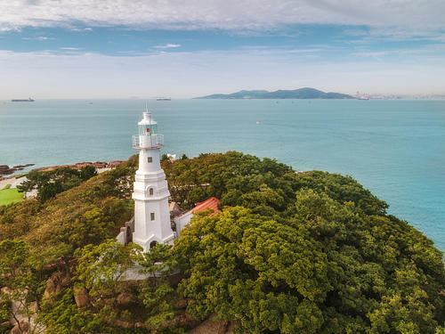 四十年代初東面筑起初具規(guī)模的“防波堤”與陸地相接,后有人視其形如琴,又名琴島。1898年,德國租占膠州后,在島上建起燈塔。解放后,該島一直為中國海軍快艇支隊(duì)沿用,并對燈塔進(jìn)行了大規(guī)模修建,現(xiàn)塔高15.5米,塔身白色,呈八角形,是國內(nèi)外船只進(jìn)出膠州灣的重要標(biāo)志。每當(dāng)夜幕降臨以后,塔上的紅燈與棧橋上的燈光在碧波上浮動,構(gòu)成了一幅美妙圖畫,故“琴嶼飄燈”被譽(yù)為青島十大景觀之一,被作為青島市的標(biāo)志之一。1988年,小青島開辟為公園,并正式對外開放,全島以栽植黑松為主的基礎(chǔ)上,還栽有櫻花、碧桃、石榴、木槿、紫薇等春、夏、秋三季開花的觀賞植物,在島上地勢較為平坦的南部有一個(gè)非常小巧的廣場,廣場中間立有手抱古琴、目視海面的“琴女”雕塑。