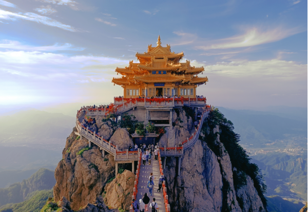 金頂?shù)烙^群:由玉皇頂、老君廟、道德府等組成,金殿建筑群依山而建,金瓦紅墻與云海相映,是攝影與朝圣的絕佳之地。一段長達5公里的懸崖棧道,沿途奇峰怪石如天然浮雕,云海翻涌時宛如行走水墨畫中。追夢谷幽深峽谷中瀑布飛瀉,溪流潺潺,寨溝原始森林覆蓋,秋日紅葉漫山,野趣盎然。