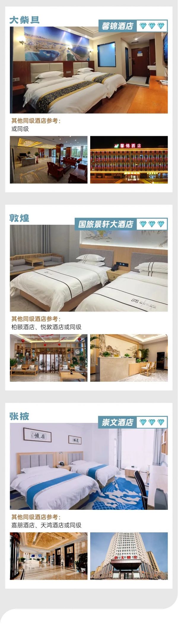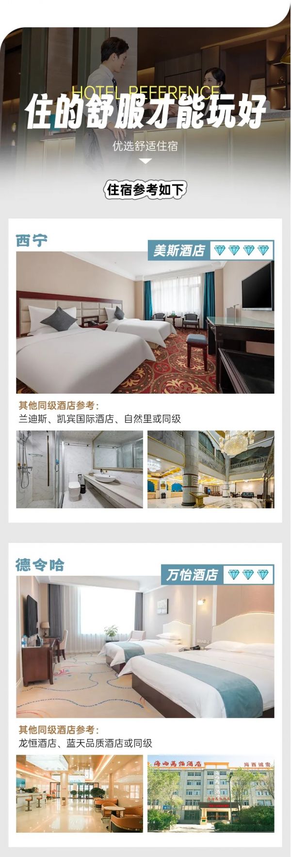 5、該線路為特種線路,當(dāng)?shù)鼐频昙安惋嫍l件無法與城市相比,請游客做好心理準(zhǔn)備;賓館內(nèi)無牙膏牙刷、拖鞋等一次性衛(wèi)生用品,請自備個人衛(wèi)生用品;沿途商店較少,民俗習(xí)慣亦有不同,游客可自備咸菜、小吃、干糧等零食,以備不時之需。