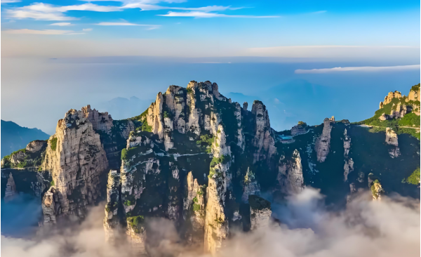 早餐后赴國家AAAAA級(jí)景區(qū)-白石山景區(qū),從東門進(jìn)入景區(qū)后上山。隨后游覽白石山國家地質(zhì)公園,它位于河北省淶源縣城南15公里,雄居八百里太行山最北端,景區(qū)面積54平方公里,最高峰云都峰海拔2096米。整個(gè)景區(qū)集黃山之奇、華山之險(xiǎn)、張家界之秀于一身,并可用“雄”、“險(xiǎn)”、“奇”、“幻”4個(gè)字加以概括。峰高谷深,峰林壁立,落差可達(dá)600米。戰(zhàn)國時(shí)度嶺分燕趙,遼宋時(shí)一山分兩國。白石山奇峰林立,絕壁橫陳,險(xiǎn)壑縱布,到處直上直下如刀削斧劈,少曲線,多棱角。尤其是峰林地貌帶,高差大,密度大,是我國惟一的大理巖峰林景觀。