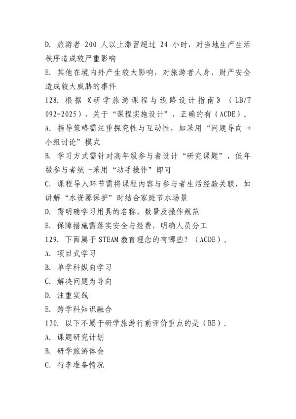 下列鏈接為”山東省“技能興魯”職業(yè)技能大賽 2025 年全省研學(xué)旅游指導(dǎo)師職業(yè)技能競賽理論知識測試題庫“