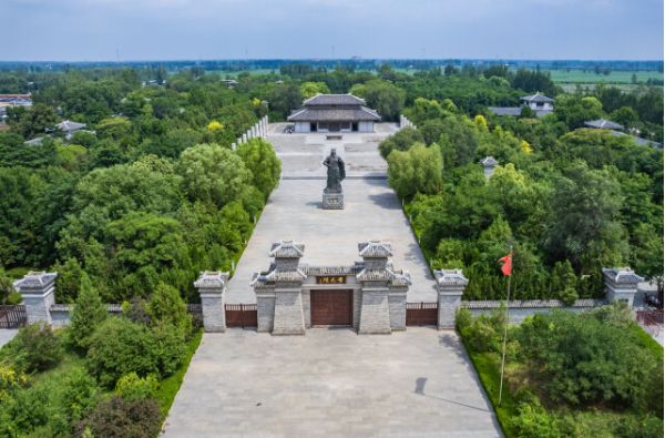 后游覽【蚩尤陵】,蚩尤陵位于山東省聊城市陽谷縣十五里園鎮(zhèn),是為紀念上古部落首領蚩尤而建的文化遺存,由首級冢與陵園組成。陵園由錢運選規(guī)劃設計,占地105畝,中軸線分布陵門、蚩尤銅像(高10.8米)、祭壇等九座建筑 。據(jù)《漢書》《史記》等記載,蚩尤戰(zhàn)敗后首級葬于東平郡壽張縣闞鄉(xiāng)。