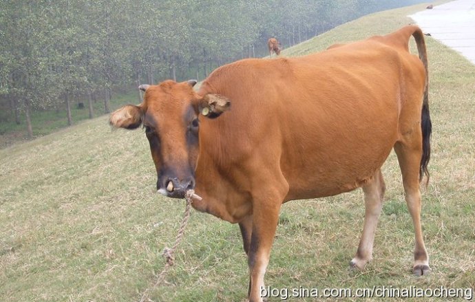 魯西黃牛,產(chǎn)于魯西平原,聊城飼養(yǎng)較多,是我國有名的役肉兼用牛種之一,在國際市場上享有盛譽。這種牛體驅(qū)高大,結(jié)構(gòu)緊湊,肌肉發(fā)達(dá),前身較寬厚,背腰寬平,毛色由棕紅到淺黃不一以黃色居多。多數(shù)牛具有完全或不完全的“三粉”特征。即眼圈、口輪、腹下及四肢內(nèi)側(cè)為粉色。通常人們依據(jù)它們體型上結(jié)構(gòu)的差異,分為高轅牛(大型)和抓地虎(小型)以及中間型三種類型。高轅牛體驅(qū)高大,四肢開闊,側(cè)望之近似正方形,行走迅速,步幅較大,適宜挽車運輸。抓地虎個體較矮。身驅(qū)較長,四肢粗壯,側(cè)望之近似長方形,步幅較小,速度較慢,但挽力和持久力較大,適于農(nóng)田耕作。中間型牛兼有兩者的特征。
