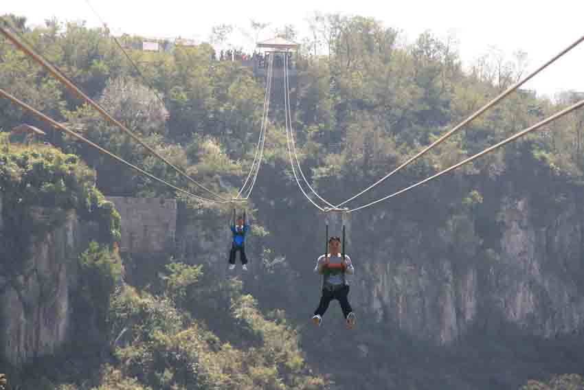 天上王城景區(qū)是在2003開始規(guī)劃,2007年開始建設,一期工程結束投資超過6000萬元,二期工程2009年規(guī)劃建設。天上王城景區(qū)位于沂蒙山腹地的沂水縣城西北40公里處,地處臨沂、淄博以及沂水、沂源、蒙陰兩市三縣交匯點,景區(qū)主體分布在紀王崮上。紀王崮海拔577.2米,頂部闊大,面積約4平方公里,南北長數(shù)公里,是沂蒙七十二崮中唯一有人居住過的崮,因此被譽為“沂蒙七十二崮之首”?!√焐贤醭蔷皡^(qū)利用紀國歷史遺跡,恢復兩千年前的紀國王城,為游客展示周禮中的禮、樂、射、御等文化體系,建成王城文化體驗區(qū);利用密林、峭壁、洞穴、古樹、名木、泉水等資源建成奇崮風貌觀賞區(qū);利用山村民居和古樸的民風、民俗資源建成山崮民情體驗區(qū);利用現(xiàn)有農(nóng)田和林果資源,建成生態(tài)田園生活體驗區(qū);利用崮崖地勢、自然環(huán)境等資源設置滑翔傘、攀巖、狩獵等戶外運動項目建成戶外休閑運動區(qū)五大功能區(qū),包含大大小小60多處景點,30多處歷史遺跡。