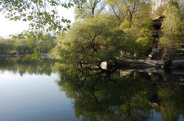 龍王潭(藏語(yǔ)日魯康)是拉薩著名的園林建筑之一。園林中心有一面積較大的潭水,傳說(shuō)六世達(dá)賴倉(cāng)央嘉措曾從墨竹工卡迎請(qǐng)墨竹賽欽和八龍供奉于北潭水中,所以稱龍王潭。龍王潭初建于六世達(dá)賴倉(cāng)央嘉措時(shí)期,但其中潭水坑形成的卻較 早,至五世達(dá)賴羅桑嘉措時(shí)期修建布達(dá)拉白宮和第巴桑結(jié)嘉措所筑布 達(dá)拉紅宮及經(jīng)房僧舍時(shí),從山腳大量取土而形成大水潭。