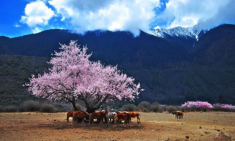 在林芝縣城東南方向約5公里處,有一片天然野生桃林,人們稱它為桃花溝。桃花溝三面環(huán)山,高處有水源,四周林木蔥蘢,終年碧綠蒼翠,間有流水,清澈見底;溝內(nèi)野桃鱗次櫛比,林間鳥雀歡噪,既靜僻又幽雅,不失為一處難得的大自然樂園和桃的砧木基地。