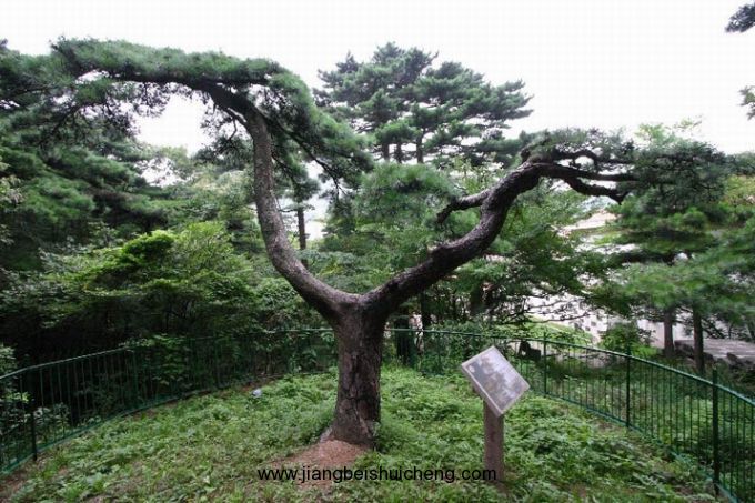 麒麟松位于獅子峰腰,近獅子林精舍。其胸徑50厘米,在樹(shù)高l.5米處分作兩干,分別朝東西方向斜展生長(zhǎng),高低錯(cuò)落。高枝如麟角,低枝似麟尾,主干樹(shù)皮如麟甲斑斑,酷似麒麟之態(tài)。故名。今人有詩(shī)贊曰:“昂頭翹尾何其神,形同異獸號(hào)麒麟。國(guó)家昌盛呈祥瑞,預(yù)兆山河萬(wàn)代春?!?