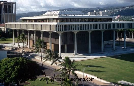 夏威夷州議會大樓,自1969年起這里成為夏威夷州政府所在地夏威夷的經(jīng)濟主要以旅游業(yè)為主,其美麗的熱帶風光每年吸引數(shù)以百萬計的全世界各地游客。
