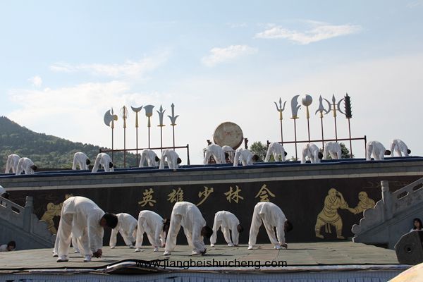 英雄少林會上,眾武僧展示深厚的武術(shù)功底