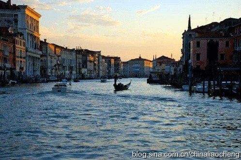 黃昏時分,夕陽在水道邊的房子撒下一角,這時,坐著岡朵拉,聽著船夫的歌聲,泛舟河上。遠(yuǎn)眺光影浮運的建筑,體會威尼斯的旅情。
