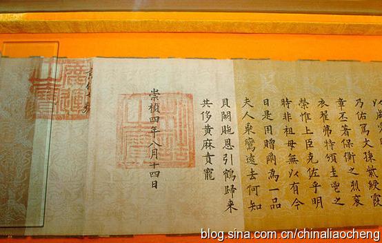 由山東文物收藏家呂乃濤先生申請(qǐng)創(chuàng)辦的“聊城明清圣旨博物館”對(duì)外開放一年間,吸引了眾多國內(nèi)外旅游者紛至沓來,爭(zhēng)睹難得一見的明、清兩朝“圣旨”真跡,令參觀者大開眼界?! ≡摬┪镳^是中國首個(gè)以“圣旨”為專題的民間收藏博物館。它坐落在有“江北水城”之稱的山東省聊城市東昌府區(qū)駐地,與著名旅游景點(diǎn)“光岳樓”相距僅50米,相互依鄰輝映。